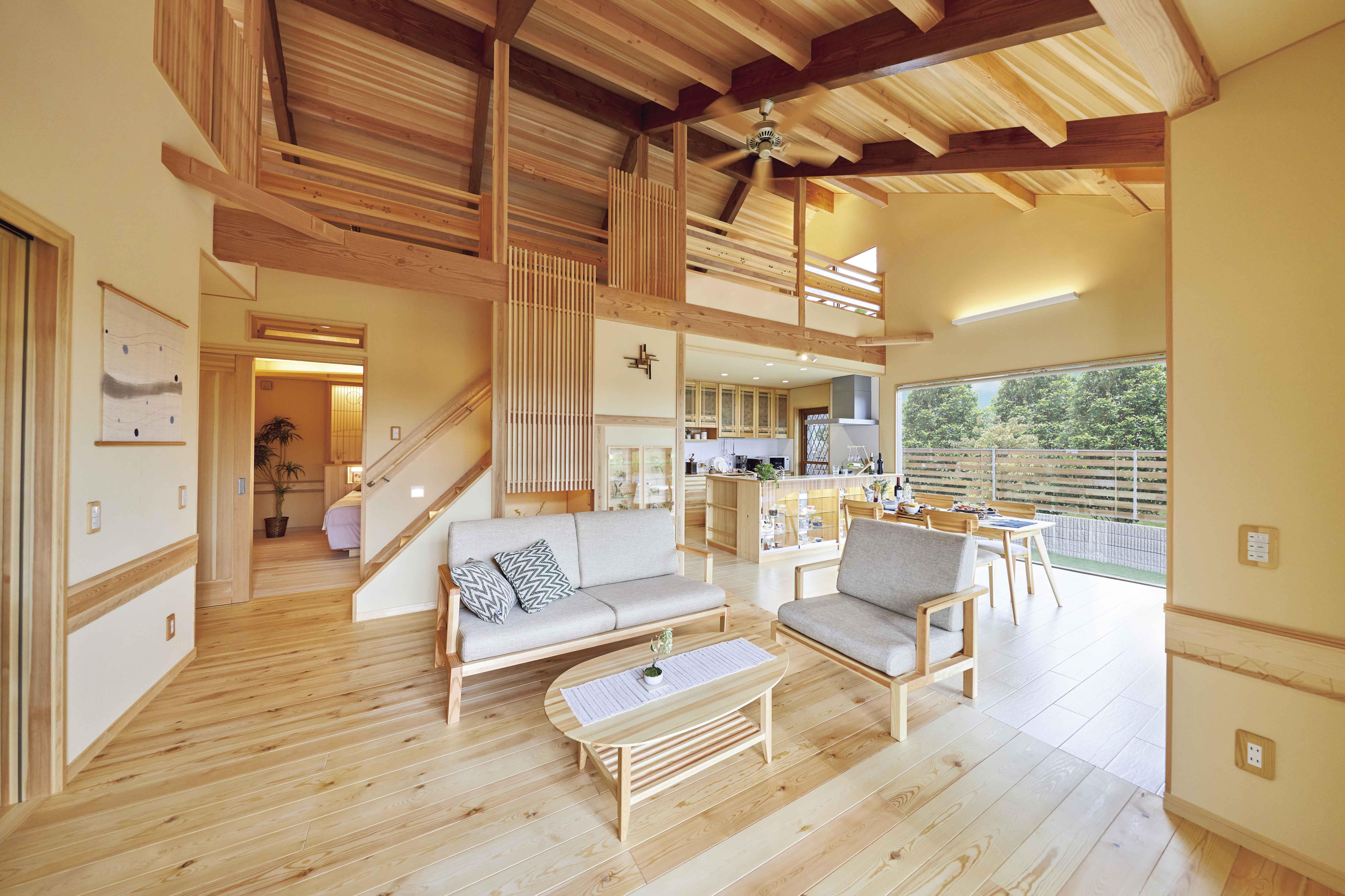 土台に米ヒバ・柱は杉・梁には米松の無垢材を使用しています。