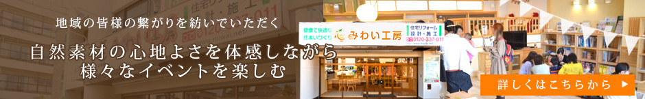 みわい工房は、お客様に自然素材の良さを体感できるショールームを開設しております。