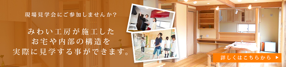 みわい工房では一人でも多くの方に自然素材、無垢材の良さを伝え、永く健康に、安全に暮らせる住まいを提供したいという思いから、現場見学会を開催しております。