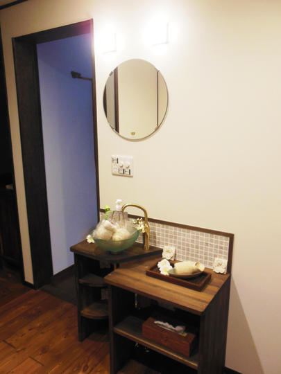 エステルームの環境が違うだけで、お客様のリラックス度も倍増します。担当して下さったハウスアドバイザーの永峯さんを始め、色んな専門分野の方たちが、リラックスできるサロンのアイデアを出してくださいました。お客様も「バリ島に来ているみたい」と喜んでくださいます。