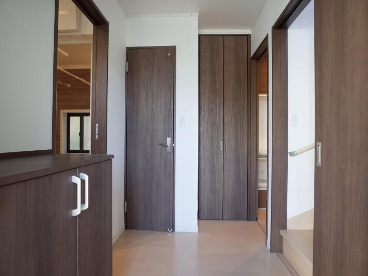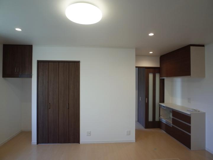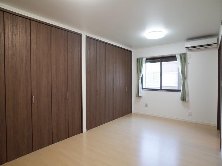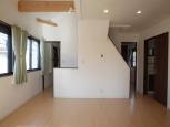 | 1階は親御様世帯、トイレや浴室に手すりを配置して、使いやすくしました。 2階は大きく間取りを変更して、広いLDKを確保、吹き抜けも作って、とても開放的な明るい空間となりました。 2階寝室は入口が2ヶ所、お子様が大きくなったら真ん中で仕切って、2部屋にすることができます。 収納も壁全面に設けていますので、ご家族が増えても安心です。 |
