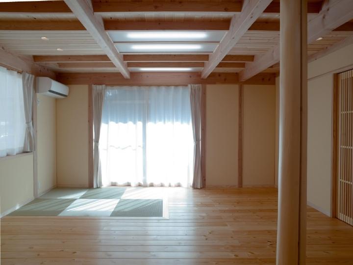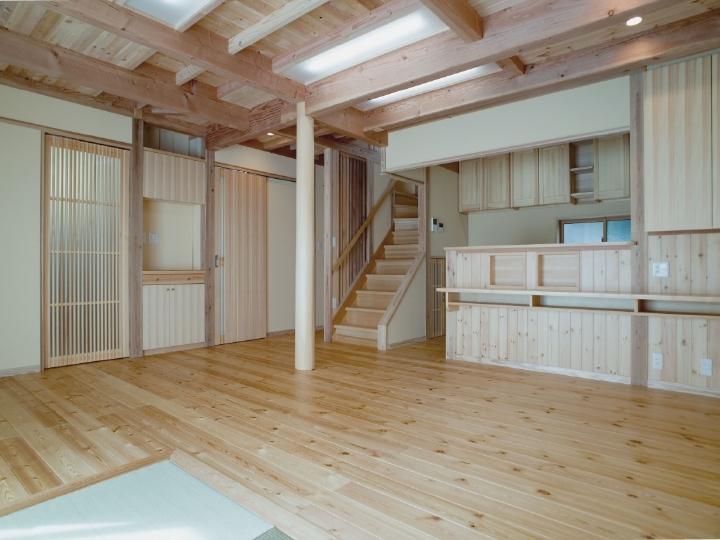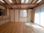 | すべてが天然木と自然素材の快適空間、湿気が少なく快適です。 対面キッチンのカウンターは食事も勉強もできて、子どもたちに目が行き届きます。 コーナーに畳スペースを設けて、やわらかい日差しとまどろむ空間。 トイレは手洗いを別にすることで、汚れにくく、掃除も楽になりました。 |