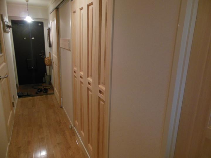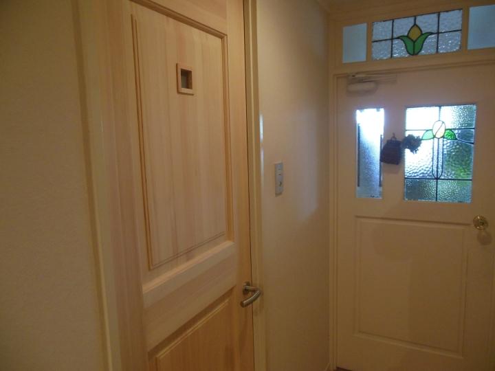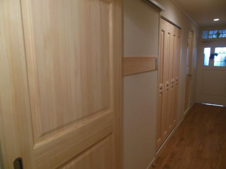| 天然木の室内建具。 既存の枠の大きさに合わせて造作しました。 落ち着いた木の雰囲気と、気の香りが素敵です。 |